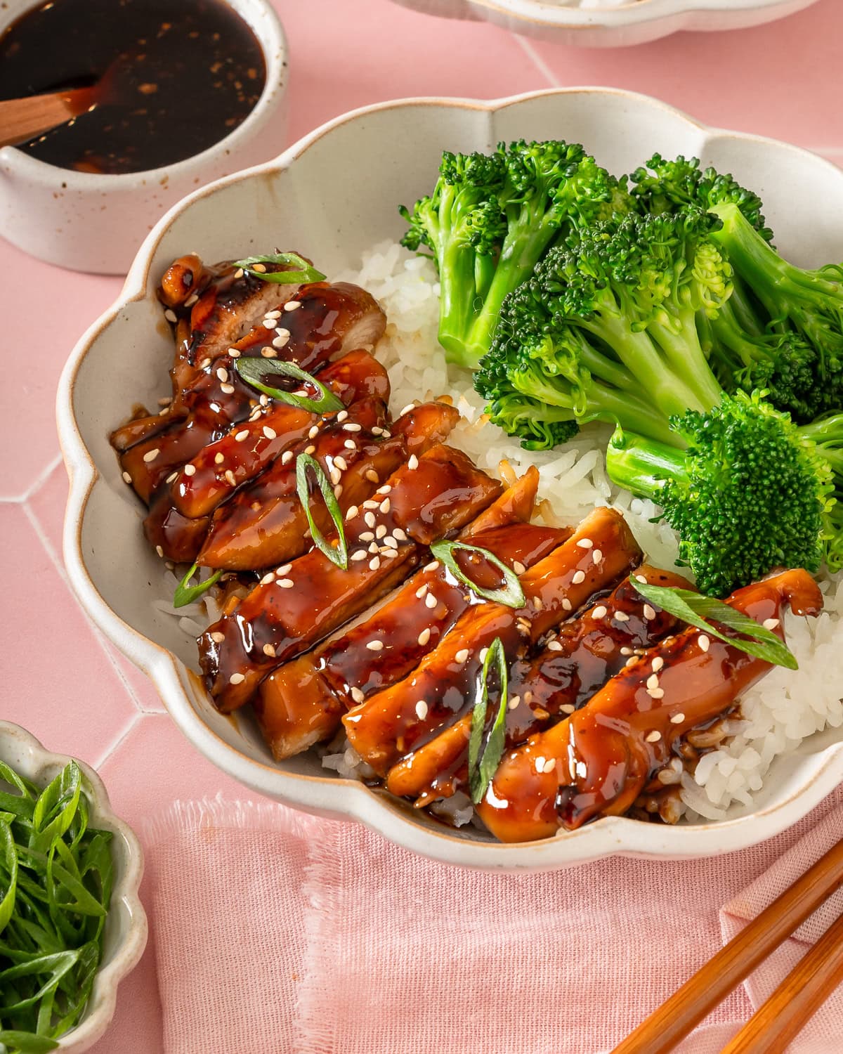 If you’re craving something sweet, savory, healthy, and better than takeout, this easy teriyaki chicken recipe is for you! These juicy, tender chicken thighs are pan-seared and then coated in a rich, glossy, homemade teriyaki sauce made with only a handful of ingredients.