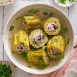 Warm, comforting Vietnamese soup made with bitter melon stuffed with pork and wood ear mushrooms. This bitter melon soup (canh kho qua) will give you a fresh start for the Lunar New Year.