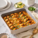Garnish and serve. Remove from the oven, garnish with cilantro, green onion, sesame seeds, and chili crisp. Squeeze fresh lime juice over the dish and serve immediately. Enjoy!